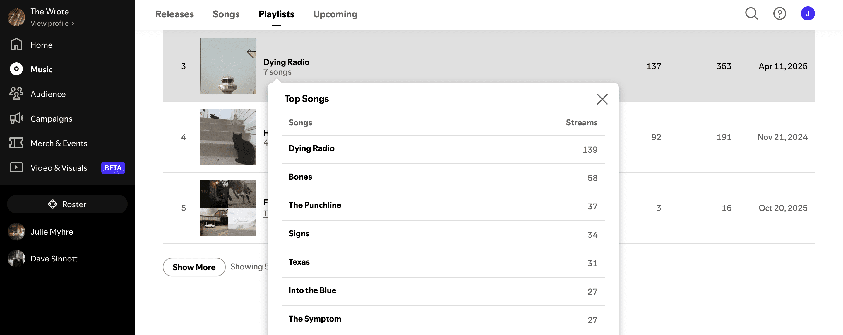 Based on verified Spotify for Artists data from 4 artists