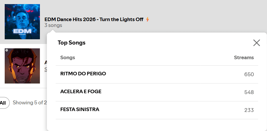 Based on verified Spotify for Artists data from 3 artists
