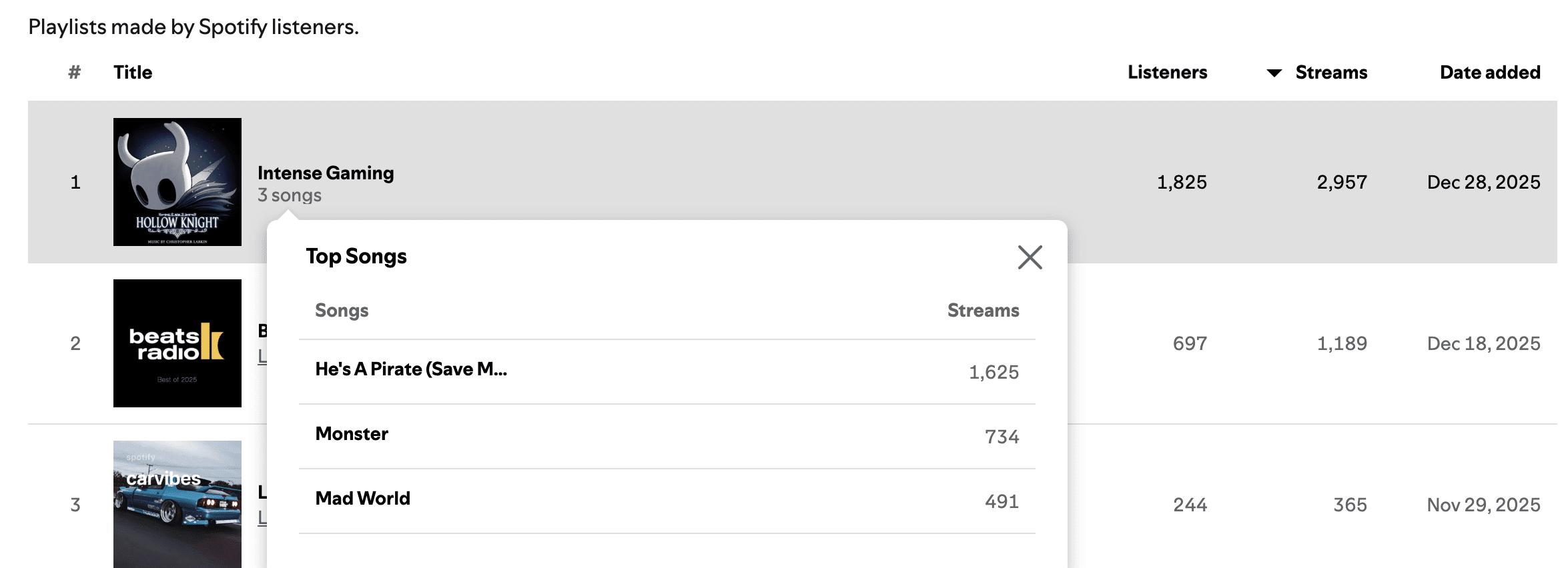 Playlist Statistics