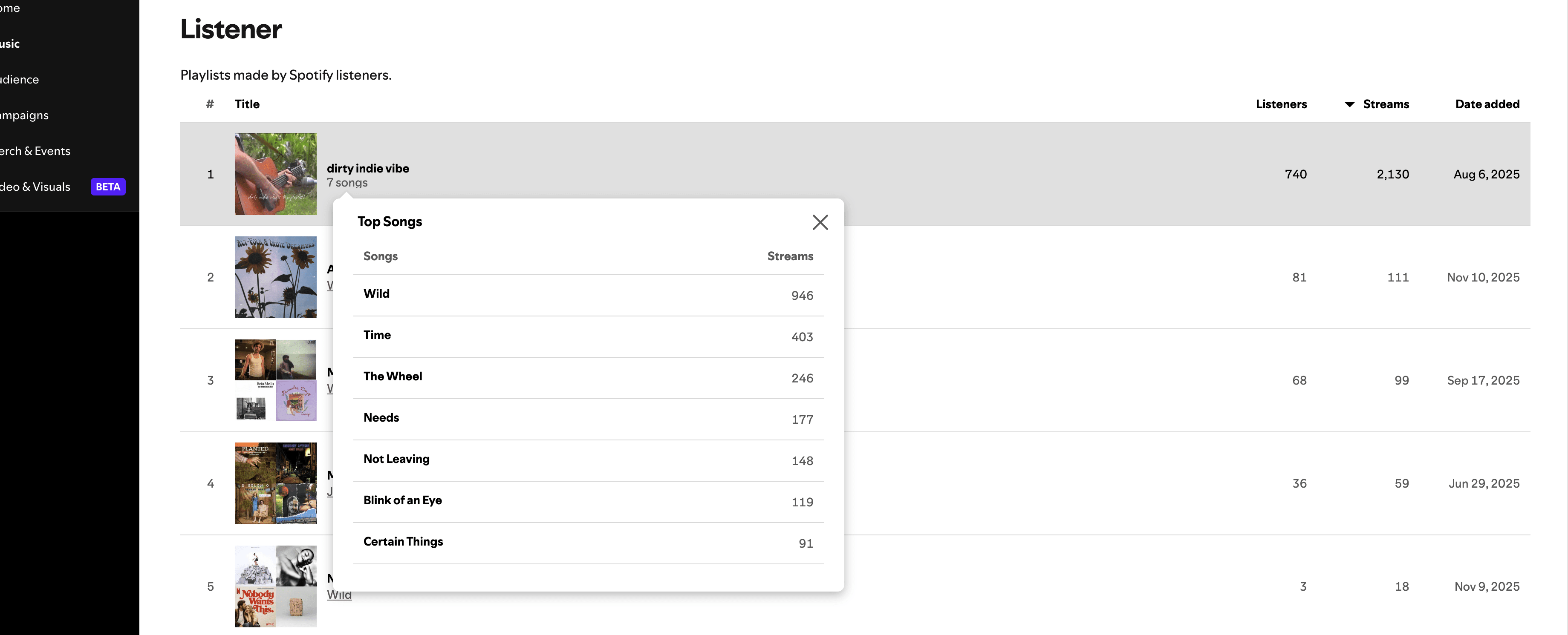 From Spotify (Real-time data)