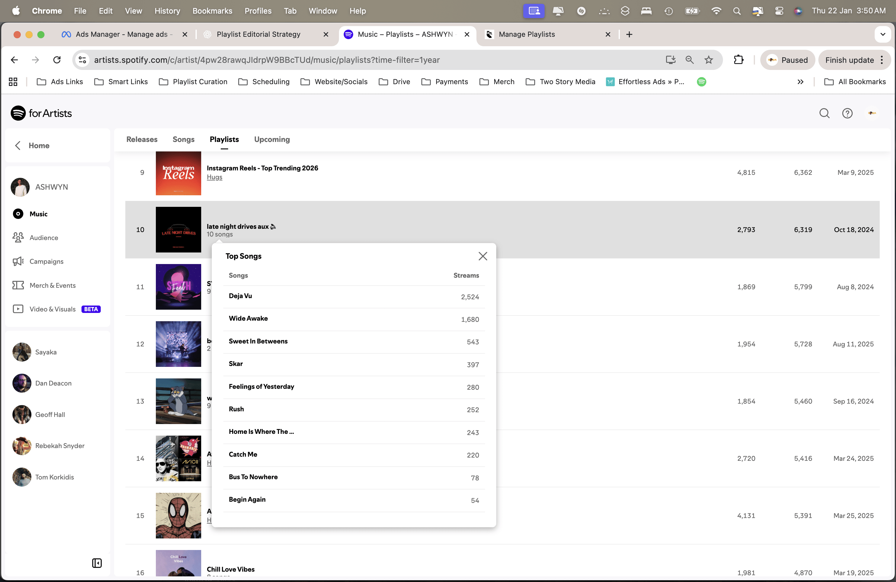 Based on verified Spotify for Artists data from 4 artists