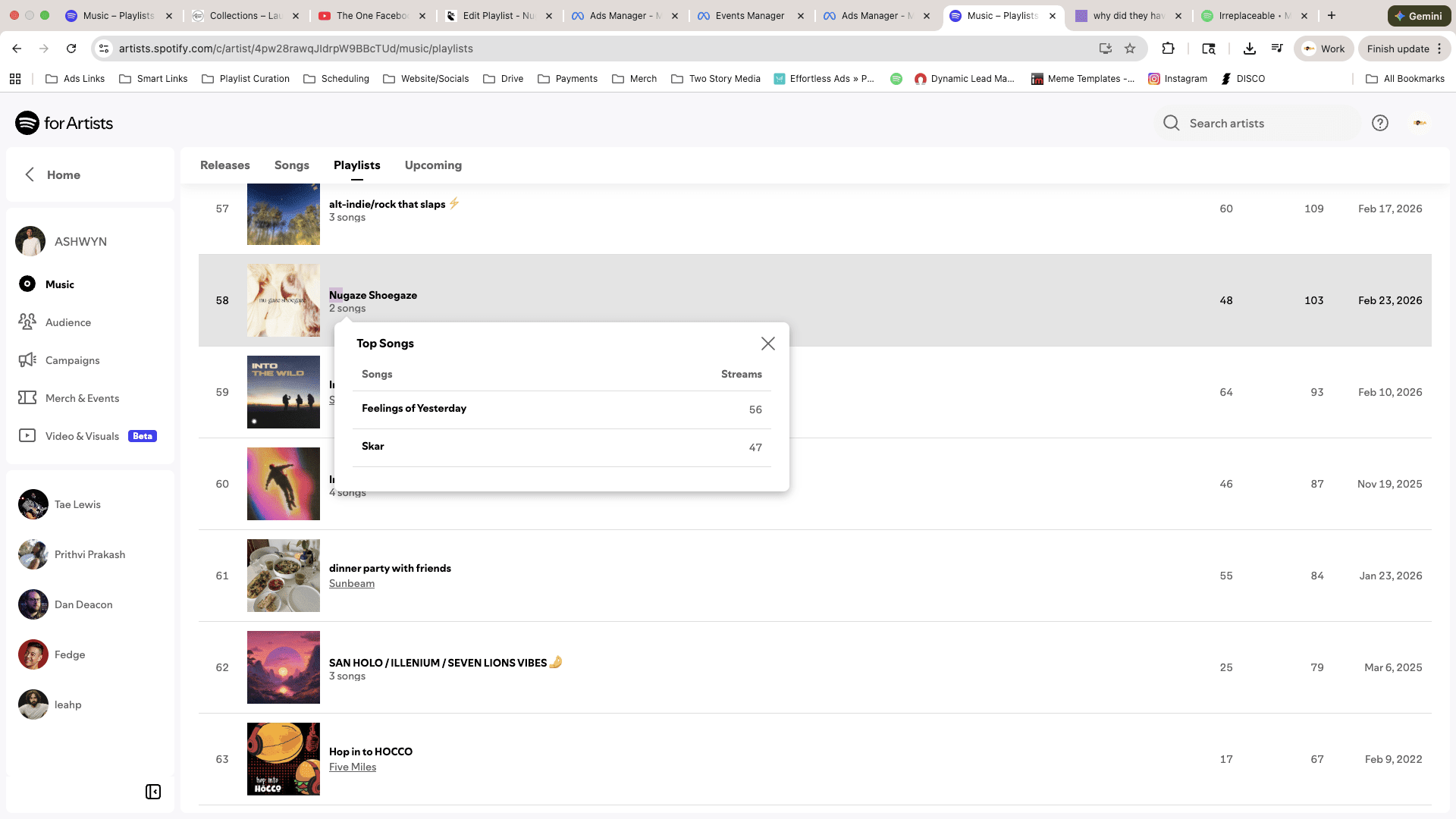 Based on verified Spotify for Artists data from 1 artist