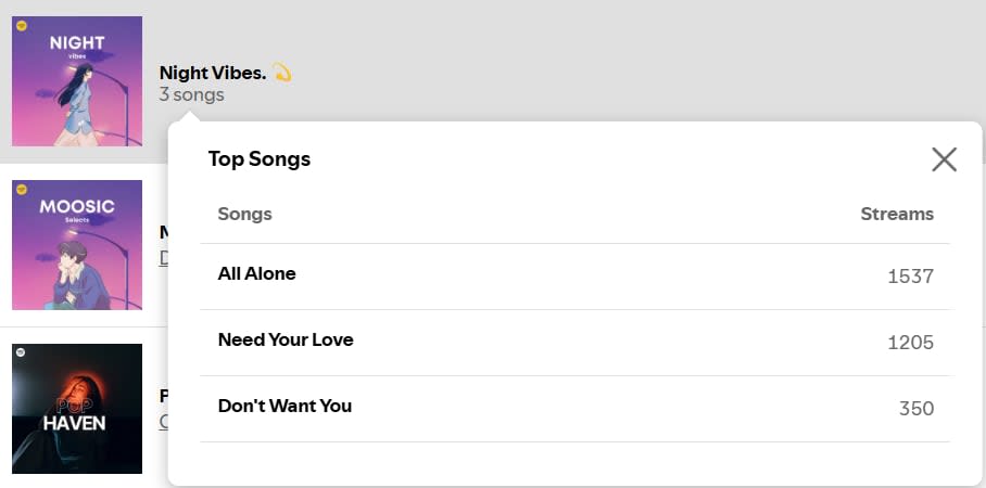 Based on verified Spotify for Artists data from 3 artists